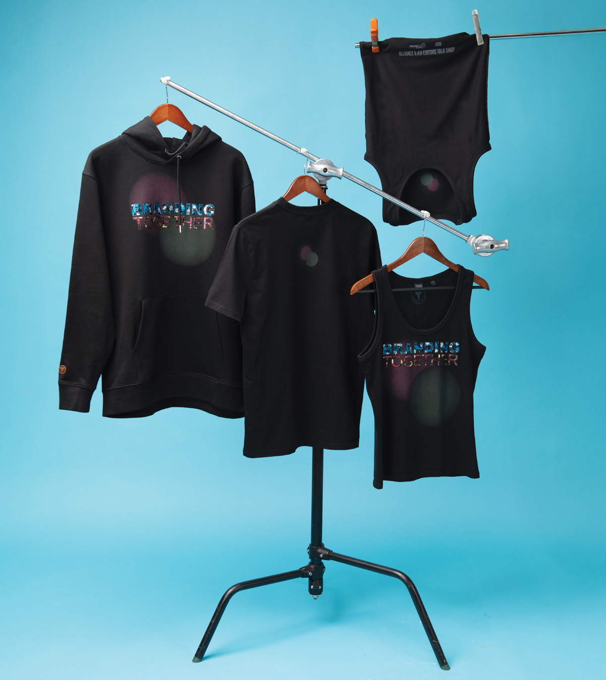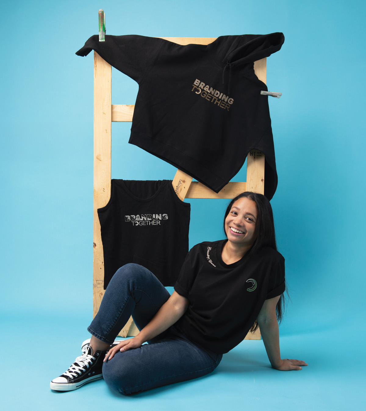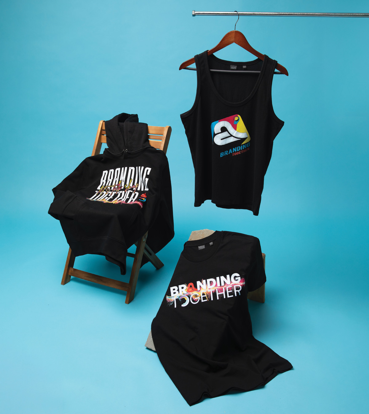 We provided six decorators with apparel and accessories from sustainability-focused suppliers Stanley/Stella (asi/89011) and Atlantis Headwear (asi/37380). We shared the Branding Together logo as a jumping-off point to come up with creative and cohesive mini-collections of branded merch for us to wear – both on the podcast as well as in our daily lives. The only design constraint we gave them was to highlight the decoration technique we assigned: heat transfer vinyl, direct to film (DTF), direct to garment (DTG), screen printing, embroidery or dye sublimation.
